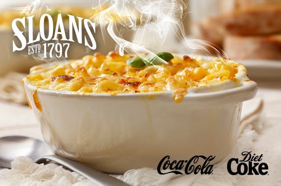 £9 instead of £23 for Sloans Legendary Mac & Cheese with your choice of topping, fries and a soft drink each for two at Sloans Bar and Restaurant in the heart of the city centre – save 62%