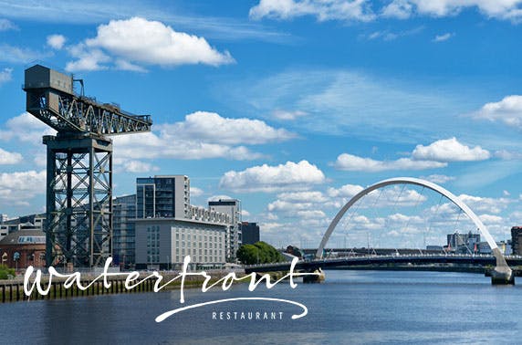 2 courses for two with a bottle of wine to share or for four with two bottles of wine at Waterfront Restaurant within Alea Glasgow; enjoy stunning views across the Clyde – save up to 62%