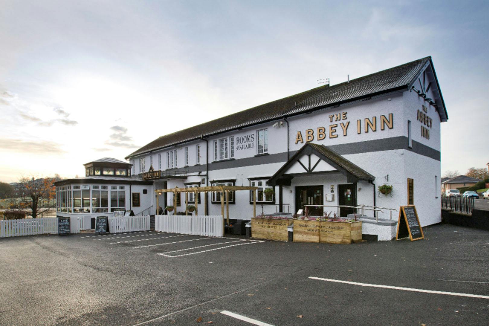 New Add to favourites Previous Next Abbey Inn Mains with wine or beer for two at cosy dog-friendly pub Barrhead Road, Paisley, Renfrewshire, PA2 7JF Valid until 31st Mar 2026 £20Save 44%