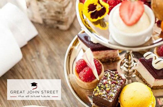 A traditional afternoon tea for two at the award-winning 4* Great John Street Hotel; tuck into sweet treats & savoury delights in decadent settings