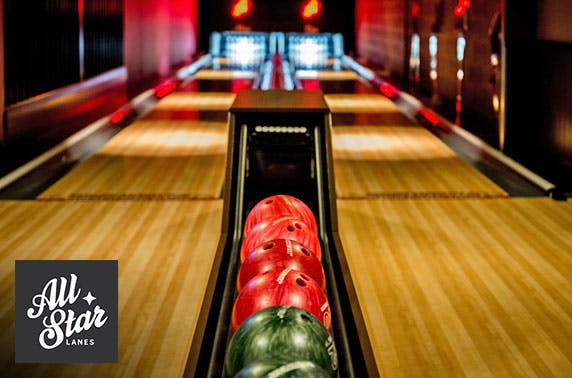 £14 instead of up to £30 for bowling, burger, side & Prosecco for one or £28 instead of up to £60 for two at celebrity favourite All Star Lanes, City Centre - save up to 53%