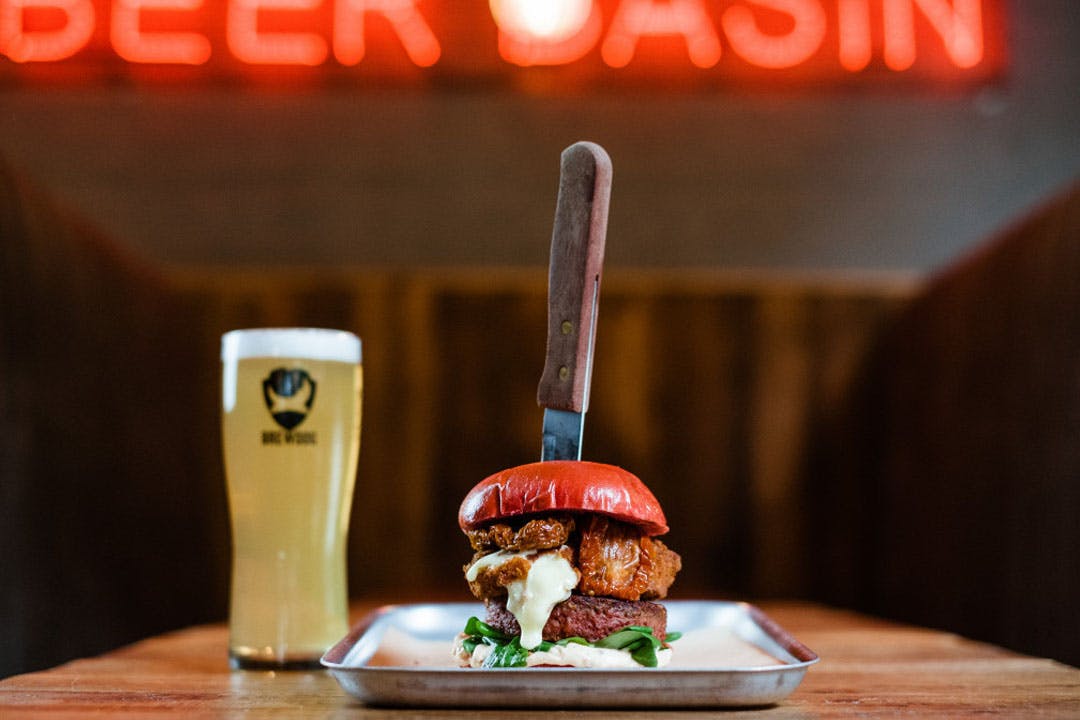 Burgers & fries for two with a schooner of Headliner beer each at at award-winning BrewDog Outpost Manchester; choose from a delicious menu inc veggie & vegan options - save up to 53%