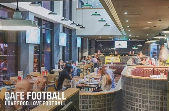 2 course meal for two, for four with wine or beer each or for a family at Cafe Football within Hotel Football; owned by Manchester United’s legendary class of ‘92 - save up to 59%