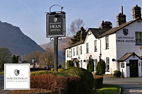 £99 instead of £198 for an overnight stay for two with breakfast, £129 instead of £224 to include optional dinner or £209 instead of £429 for 2 nights at Macdonald Swan Hotel, Lake District; the perfect cosy countryside break - save up to 51%
