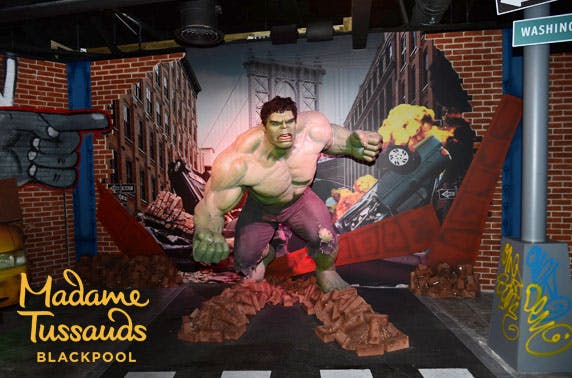 £12.50 for 1 child entry and guidebook or £15 for 1 adult entry and guidebook for Madame Tussauds, Blackpool; inc access to the new Marvel Comics zone