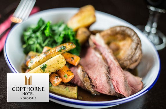 £25 instead of £53 for a 2 course Sunday lunch for two with a bottle of wine to share or £49 instead of £107 for four with 2 bottles of wine at 4* Copthorne Hotel, Newcastle; inc tea and coffee – save up to 54%