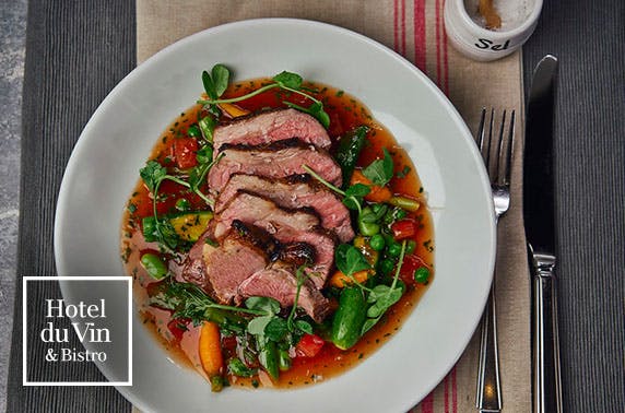 3 course Champagne lunch for two or a 3 course dinner with a bottle of wine to share at 4* Hotel du Vin Newcastle; fabulous French restaurant in a beautiful riverside location - save up to 54%