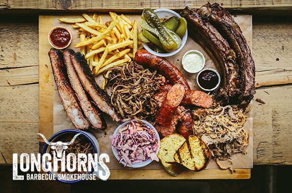 £16 instead of up to £35 for a sharing board or burgers for two plus beers or soft drinks at Longhorns Barbecue Smokehouse, City Centre – save up to 54%