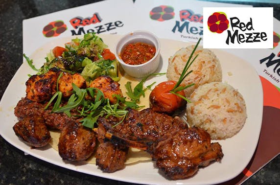 £15 instead of up to £34 for a hot or cold mezze starter to share plus a main course each for two at Red Mezze – save 56%