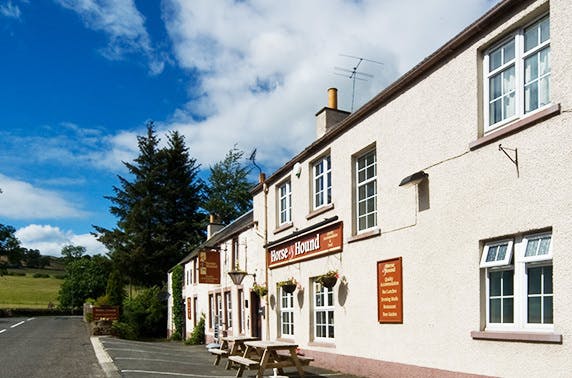 £35 instead of £77 for an overnight stay for two with breakfast or £69 instead of £154 for a 2 night stay at The Horse & Hound Country Inn, near Hawick – save up to 55%