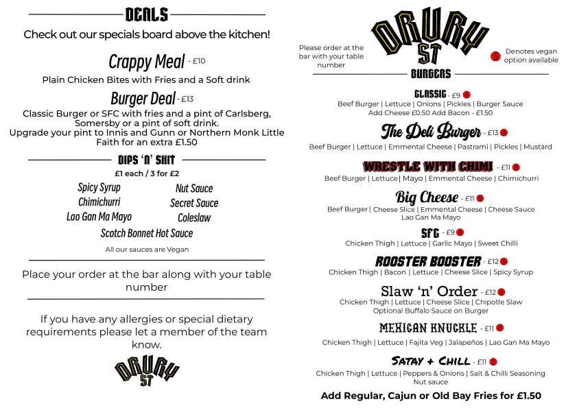 A City Centre dive bar featuring a menu packed with loaded burgers, indulgent mac & cheese and more with plenty of vegan options. Drury Street Bar & Kitchen's laid back vibes, table & board games, and extensive drink selection make it the perfect choice for a grown up night of fun!